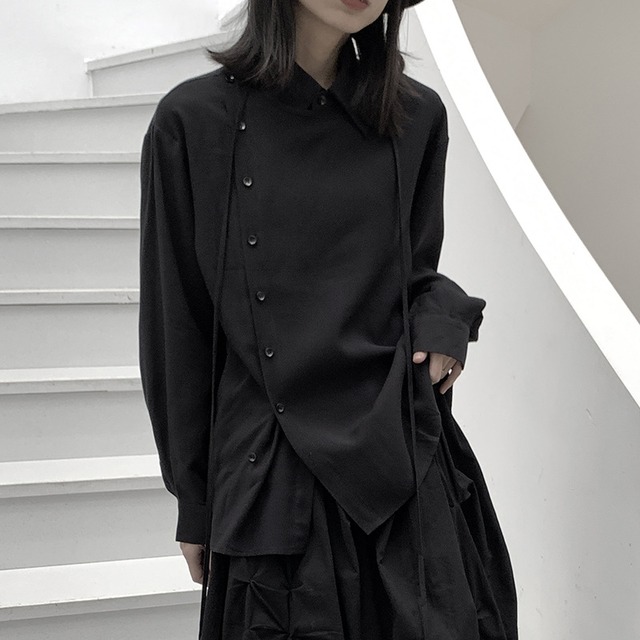 スタイリッシュなアシンメトリーシャツ カジュアルにもキレイめにも着こなせるので、様々なシーンで活躍してくれます。 洗濯表示をご確認下さい。