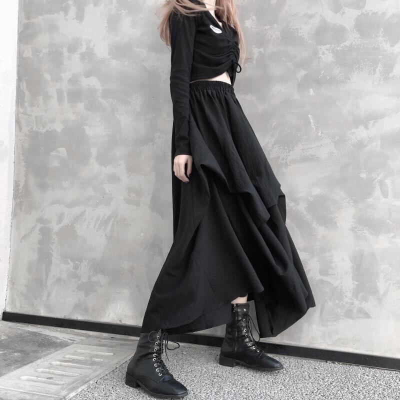 アシンメトリーロングスカートは、揺れるデザインが魅力の一枚です。左右非対称のヘムラインが、歩くたびに女性らしい軽やかな動きを演出してくれます。シンプルなトップスと合わせるだけで、一気におしゃれ度がアップする優秀アイテムです。