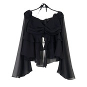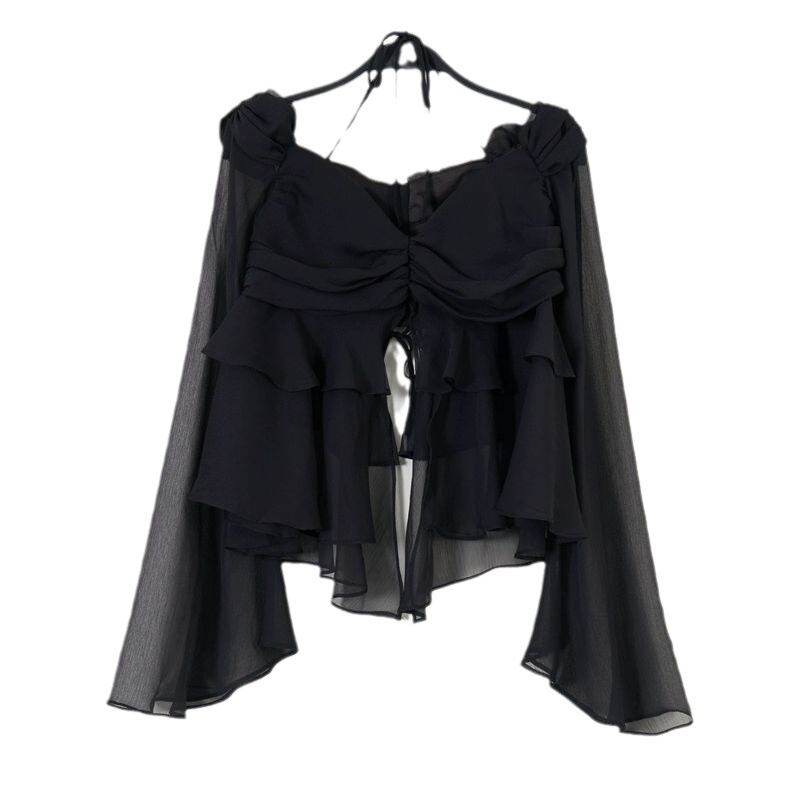 デリケートな女性らしさを漂わせるシフォンブラウス。優雅な透け感と柔らかな素材で、どんなファッションにもぴったりマッチします。シンプルながらも、上品な印象を与える一枚です。