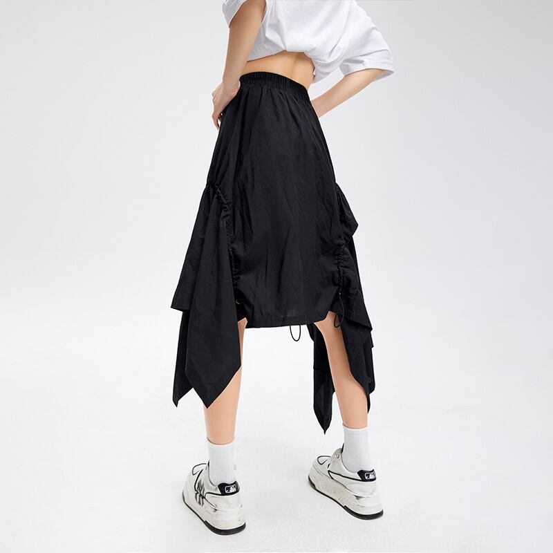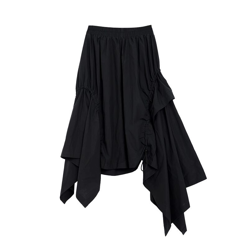アシンメトリーギャザースカート、シンプルながらも個性的なデザインが魅力で、足元を華やかに演出してくれます。デイリーシーンからお出かけやパーティーまで、幅広いシチュエーションで活躍してくれることでしょう。